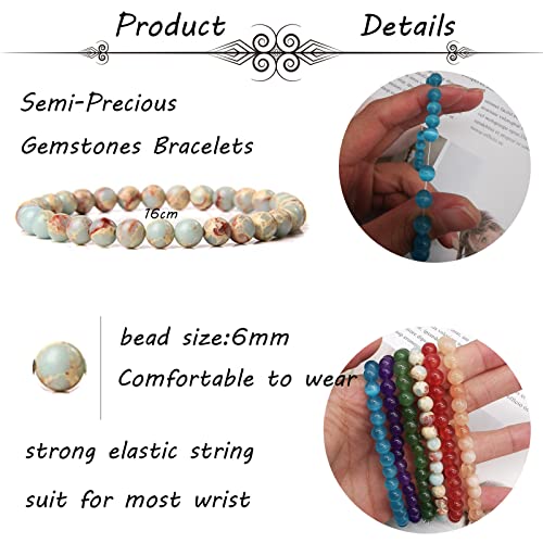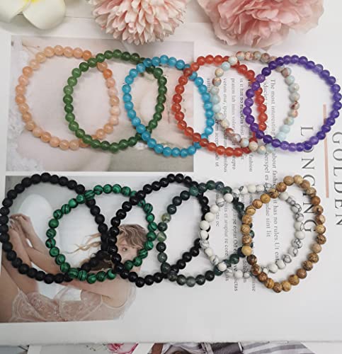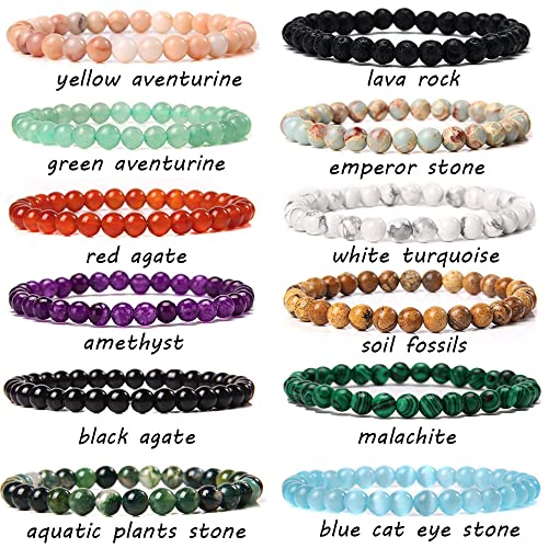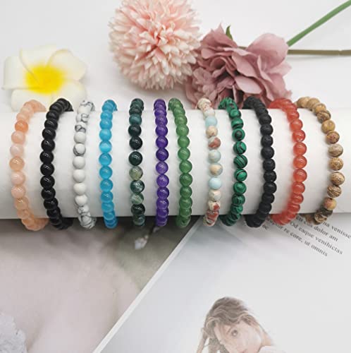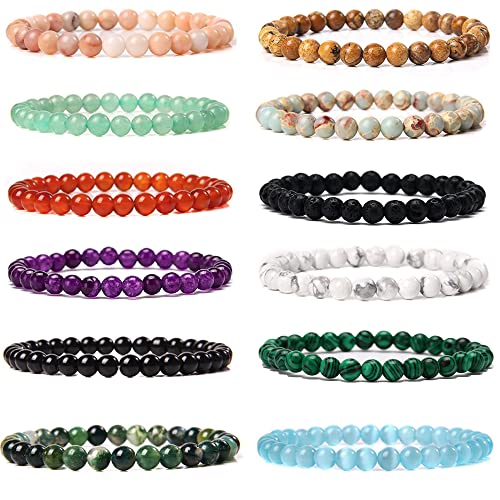 MOZAKA - MOZAKA 12Pcs 4mm 6mm 8mm Gemstones Beaded Bracelets for Men Women Stone Bead Healing Stretch Round Bead Crystal Semi-Precious Bracelets Unisex, 8 inch, Stone, hematite