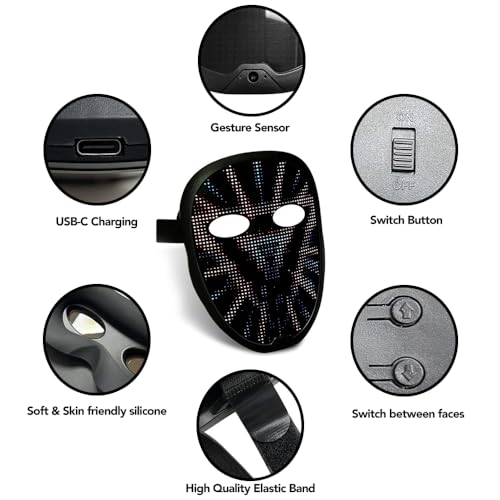 Generic - قناع ليد لتحويل مظهر الوجه من مستر بوجي، بدعم بلوتوث، يمكنك تركيبه بنفسك، مصمم بإيماءات وموسيقى، للهالوين والحفلات