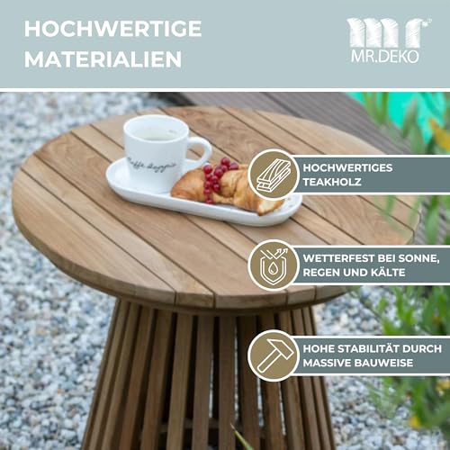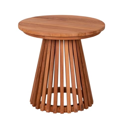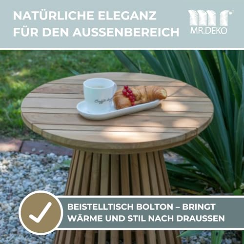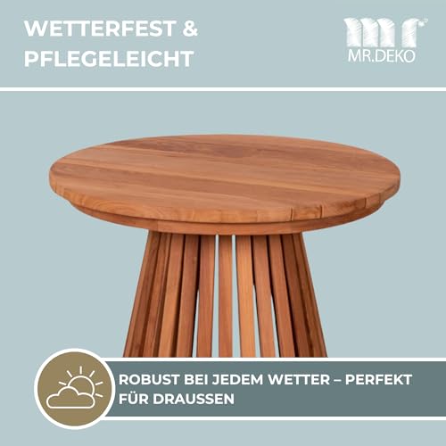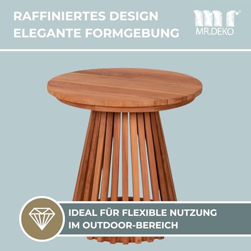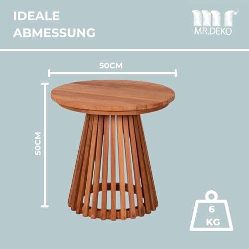 MR. DEKO - Bolton Side Table Teak Wood Round Diameter 50 x 50 cm (DxH) Outdoor Furniture Table Foldable Sturdy Folding Table for Balcony, Patio, Conservatory, Garden