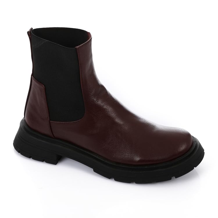 Mr Joe - بوت تشيلسي سميك من الجلد الطبيعي من مستر جو، بورجندي، نمط 3731