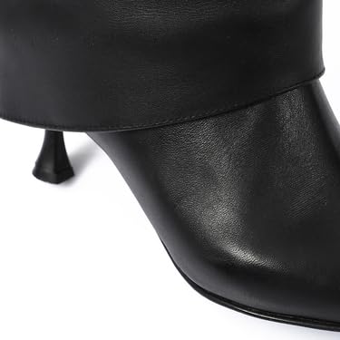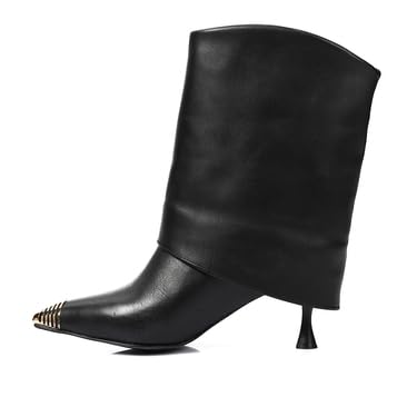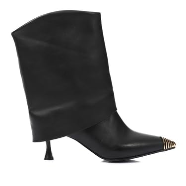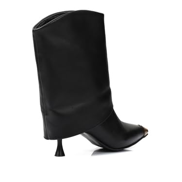 Mr Joe - بوت طول الكاحل من الجلد الطبيعي بكعب متوسط مع اكسسوار مرصع بالجواهر الذهبية من مستر جو - 3852