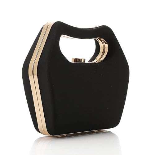 Mr Joe - شنطة يد صغيرة بتصميم هندسي بمقبض ذهبي من مستر جو - اسود