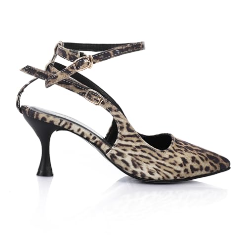 Mr Joe - Mr Joe Leopard Print Kitten Heel Pumps with Ankle Straps -3010