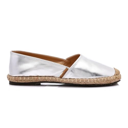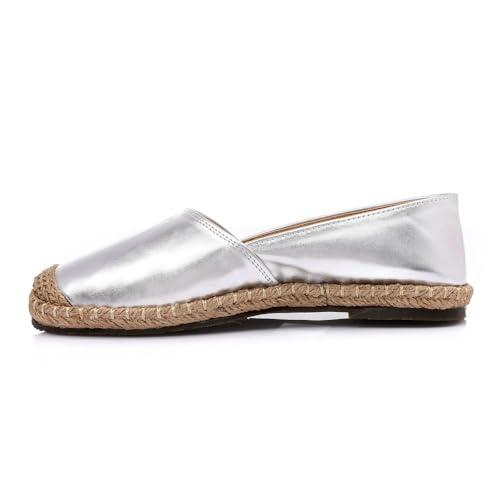 Mr Joe - Mr Joe Straw Sole Slip On Women Flats Silver 3894