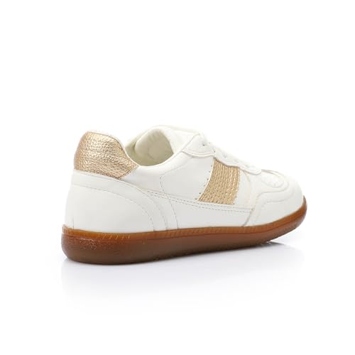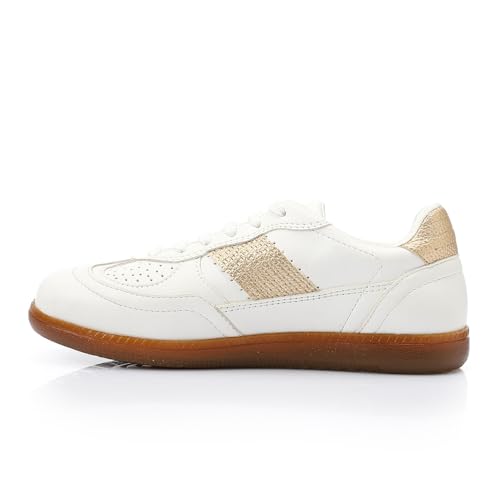 Mr Joe - حذاء رياضي مصنوع من الجلد الصناعي للنساء من مستر جو 3035 لون أبيض وذهبي