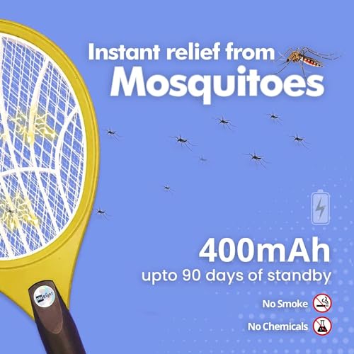 Mr. Right - مستر. مضرب بعوض قابل لإعادة الشحن (متوافق مع المعايير الأوروبية) | صنع في الهند من مستر رايت (لون أصفر خردلي)