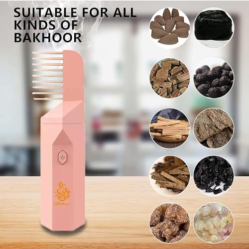 MRKCARE - مبخرة بتصميم مشط من ام ار كيه كير، استمتع بإطلاق الروائح العلاجية والأناقة في جهاز واحد مبخرة للعود محمولة وسهلة الاستخدام وقابلة لإعادة الشحن بمنفذ USB للاسترخاء في المنزل والمكتب والسيارة، وردي، B14
