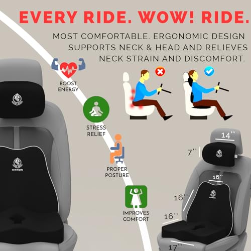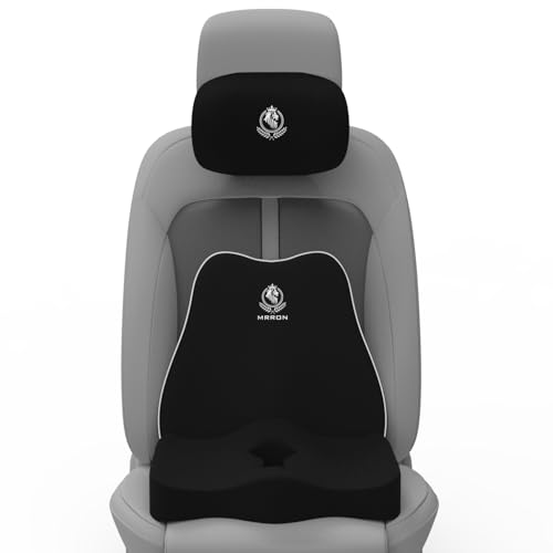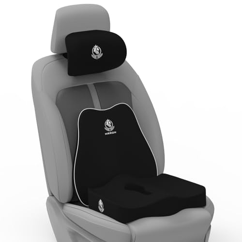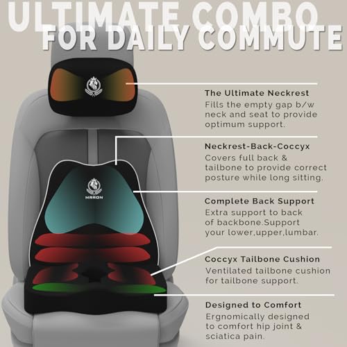 MRRON - MRRON Memory Foam Car Seat Cushion Combo – Backrest, Coccyx Cushion & Neck Pillow – Orthopedic Support for Back, Tailbone, Sciatica & Neck Pain – Ergonomic Comfort for Car, Office & Travel (Black)