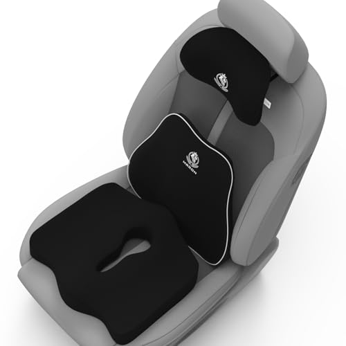 - ✔️ All-in-One Comfort Set: Includes a contoured memory foam backrest, coccyx cushion, and neckrest for full spinal support and pressure relief during long drives or extended sitting.