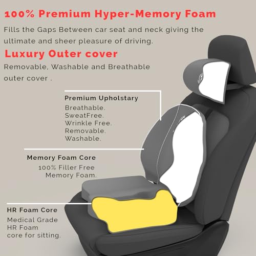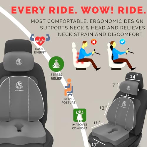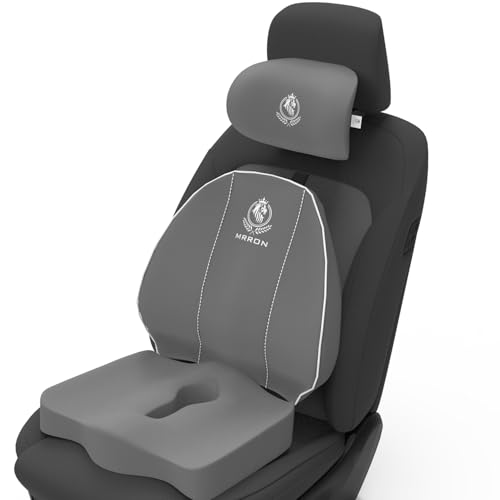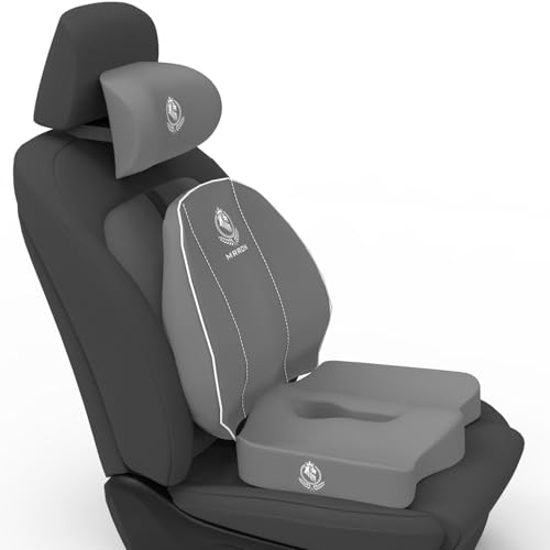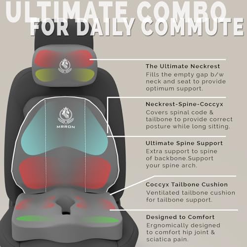 MRRON - MRRON Memory Foam Car Seat Cushion Combo – Lumbar Backrest, Coccyx Cushion & Neckrest for Tailbone, Sciatica & Back Pain Relief – Orthopedic Support for Driving, Office Chair & Long Sitting (Grey)