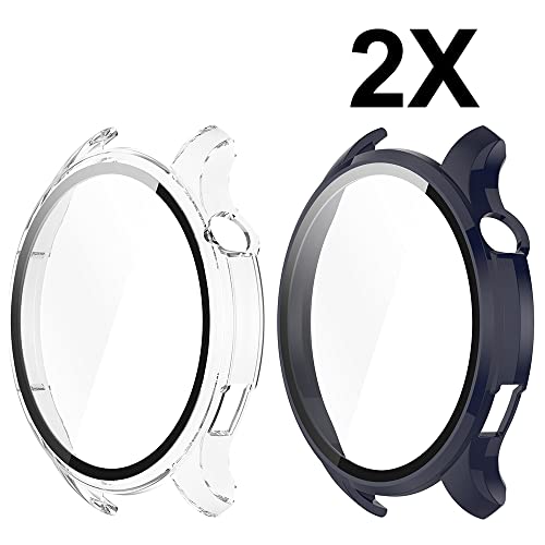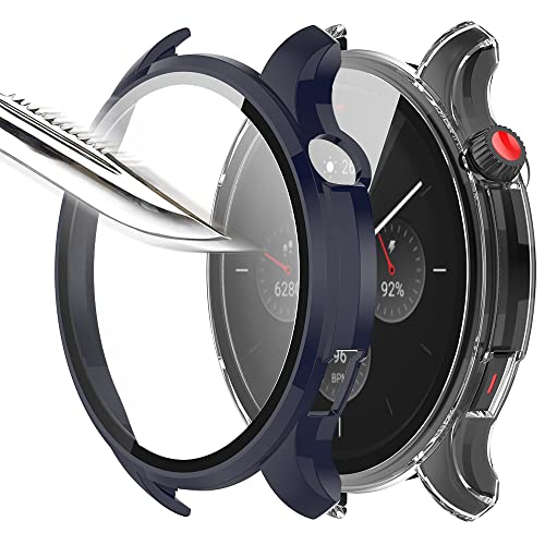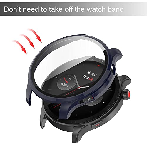 Msiall - شاشة حماية للساعة من مسيال واقي الزجاج المقوى لساعة امازفيت جي تي ار 4 جراب رفيع ممتص للصدمات لحماية كاملة البولي كربونات بدرجة صلابة 9 [قطعتان] أزرق-شفاف أسود شفاف