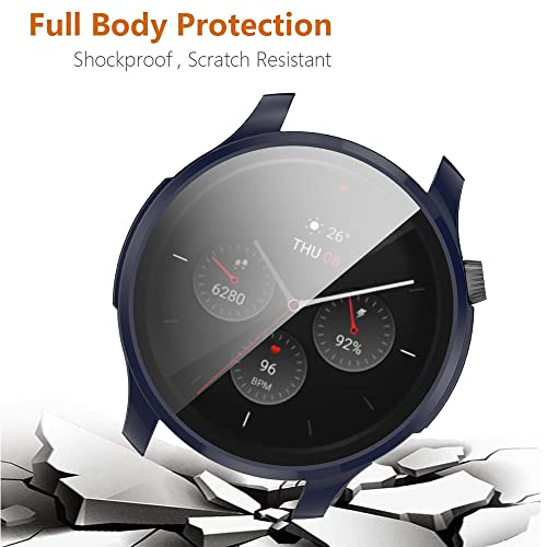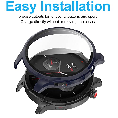 - [تصميم مثالي]: جراب متين للغاية من البولي كربونات + زجاج مقوى مع واقي شاشة، يغطي الحواف الأمامية والمنحنية بالكامل لساعة امازفيت جي تي ار 4، ويحمي من الخدوش والسقوط والصدمات.