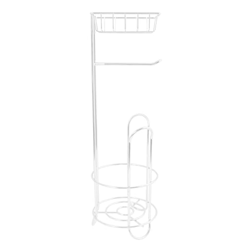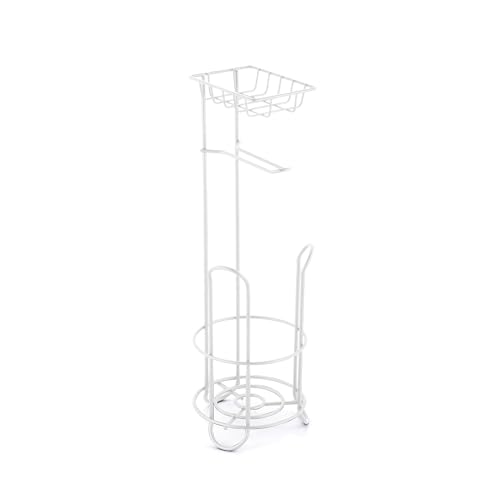 MSV - MSV Toilet Roll Holder with Shelf, Slim Toilet Roll Holder Standing Metal Freestanding Toilet Roll Stand Holds 3 Rolls in Matte White