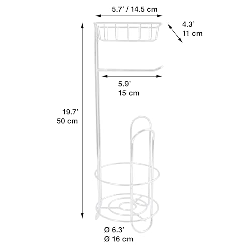 - Toilet paper and wet wipes: this toilet paper stand is suitable for storing toilet paper including two spare rolls and has a shelf for mobile phone, smartphone, wet wipes and more