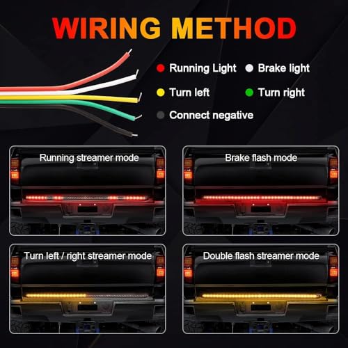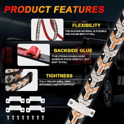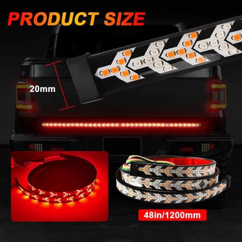 Generic - MT BEST BUY Truck Led Light Arrow 120Cm Tailgate Bar Strip RED Brake Sequential Amber Turn Signal Lights Double Flashing Light Tail Light Bar for Pickup Trailer SUV RV Van-1PCS