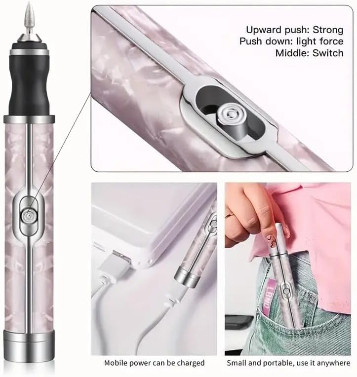 - VERSATILE DESIGN: Professional electric nail drill with elegant pink marble pattern, perfect for both home and salon use for manicures and pedicures