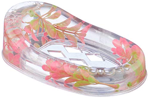 MT - طبق صابون من البلاستيك بتصميم زهور لون شفاف وبينك من ام تي