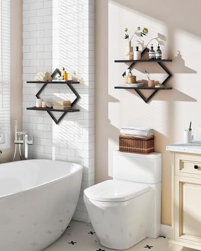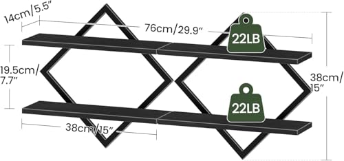 MTANK - ارفف حائط عائمة لديكور المنزل من متانك - مجموعة من 2 رف تعليق هندسي مع اطار معدني | منظم تخزين مزخرف يثبت على الحائط لغرفة النوم وغرفة المعيشة والحمام والمطبخ | (اسود)