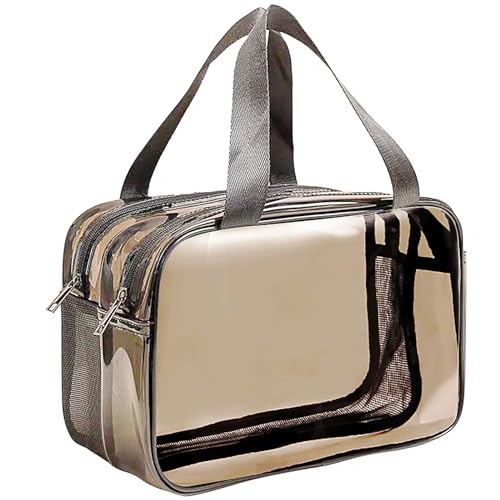 MUAMAX - MUAMAX Clear Toiletry Bag Large Travel Women Men Cosmetic Bag Waterproof & Draining Makeup Bags with HandlesTravel Wash Bag with Zippers Transparent Tote Bag for Traveling Beach Spa