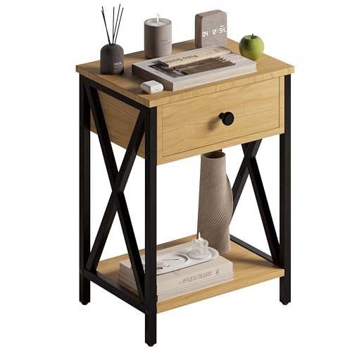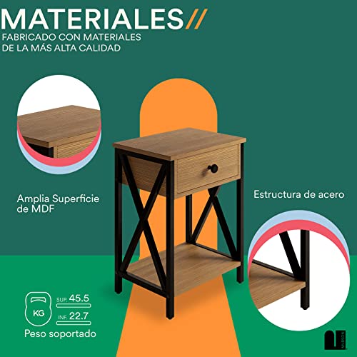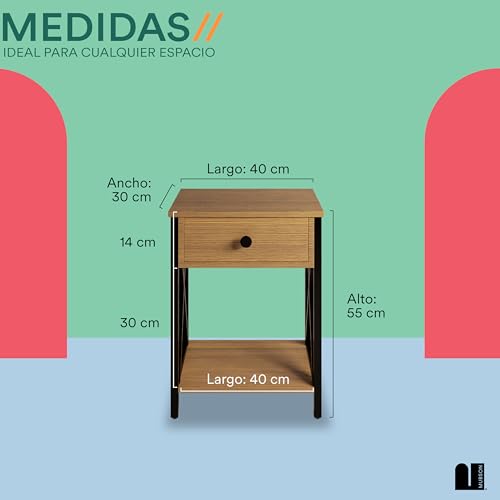 MUBSON - MUBSON Bedroom Bag with Drawer and Double Shelf | 55 x 30 cm | Vintage Bedside Table for Living Room or Bedroom | Minimalist Buro | Almez Side Table for MDF Wooden Living Room (Beige)