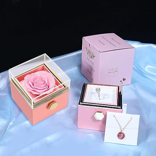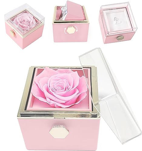 muchly - صندوق خاتم بتصميم وردة من ماتشلي اقتراح يدور 360 درجة. مجوهرات مخملي مربع لخاتم الاقتراح او المراسم الزفاف المناسبات الخاصة بينك زجاج زهري