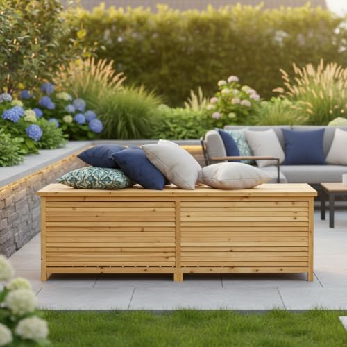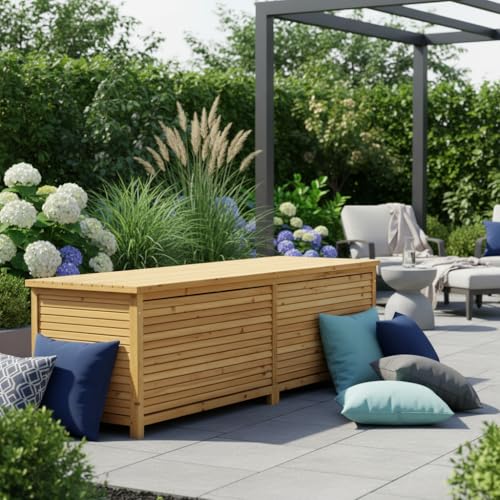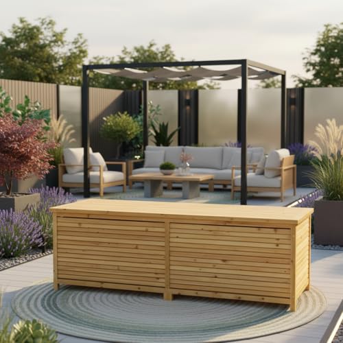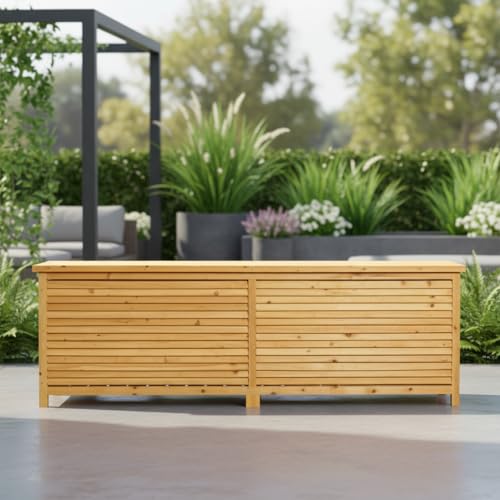 - Practicality and aesthetics combined: XXL wooden storage box / invest in the order and aesthetic appearance of your garden. Our XXL wooden storage box combines practicality and elegance. Order today and create a tidy and stylish outdoor ambience.