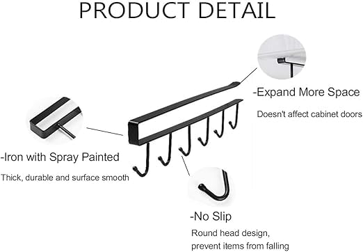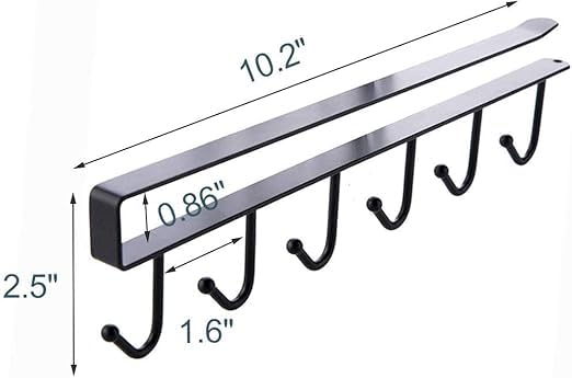 - حامل الأكواب المعلق بـ 6 خطافات وبرغي للتثبيت - زيِّن مطبخك وخزانة ملابسك مع حامل الأكواب العملي هذا. يمكن تركيبه بسهولة على خزانة المطبخ أو خزانة الملابس دون الحاجة إلى ثقب. يتيح لك حمل الأكواب والكؤوس والمجات وغيرها بأمان وبأسلوب(اللون كما موضح بالصوره الرئيسيه). لا تتردد ان تطلبه الان