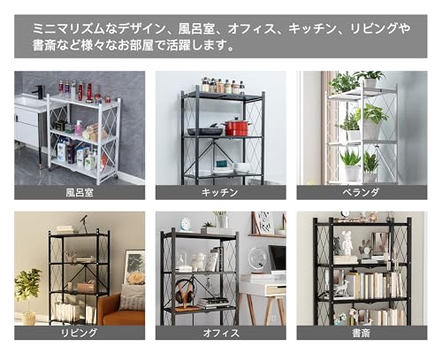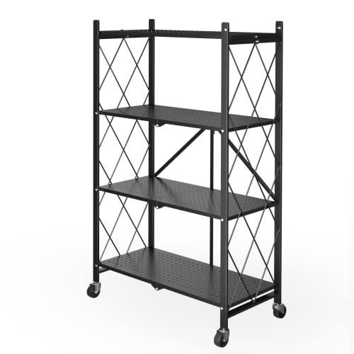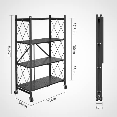 Muichi - Muichi Steel Rack, Storage Rack, Metal Rack, Foldable, Open Rack, 4 Tiers, Width 28.0 x Depth 13.4 x Height 49.6 inches (71 x 34 x 126 cm), Kitchen Rack, Shelf, Wheels, Convenient to More, Cupboard,