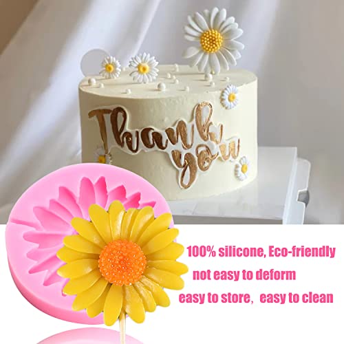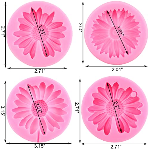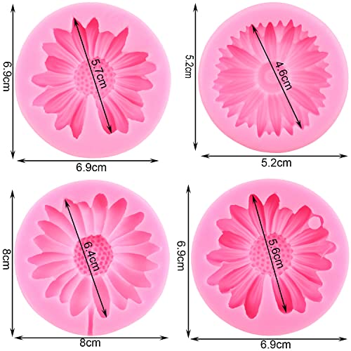 Mujiang - Mujiang Chrysanthemum Silicone Mold Sunflower Fondant Mold Daisy Flower Candy Mold For Cake Decoration Cupcake Topper Polymer Clay Chocolate Gum Paste Set Of 4