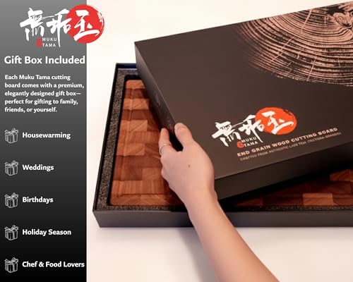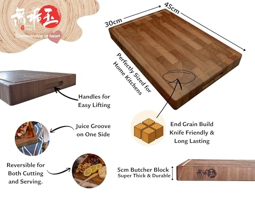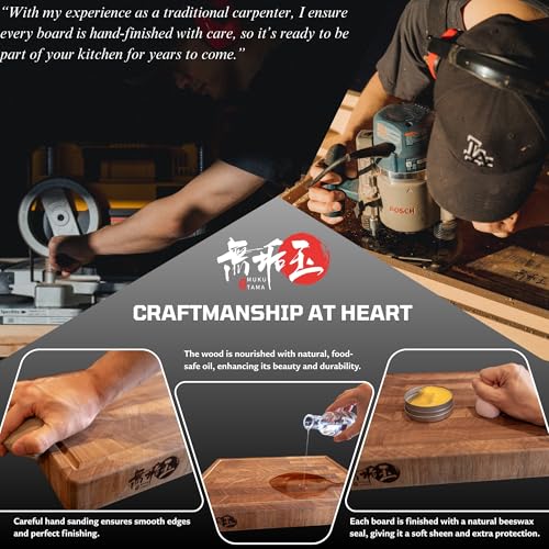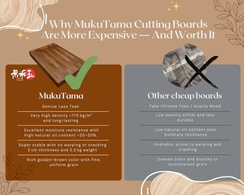 Muku Tama - لوح تقطيع من خشب الساج اللاوسي بسمك 5 سم ووزن 5.2 كجم مع سطح ألياف طرفية مخصص للاستخدام الشاق وآمن على السكاكين ومضاد للبكتيريا من موكو تاما