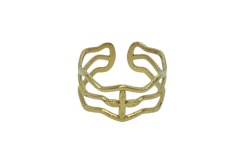 Generic - Multi Band Design Stainless Steel Open Ring - Gold