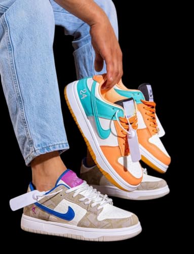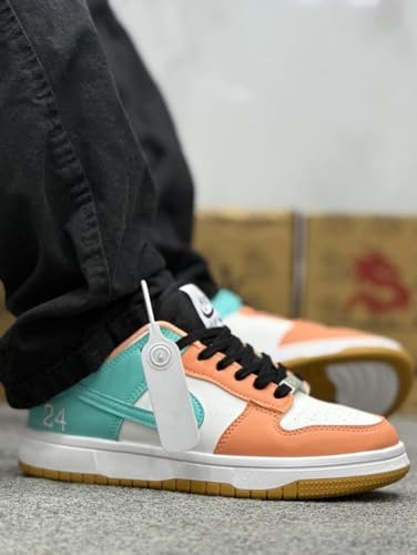 Generic - Multi Color Block Fashion Sneakers For Men White/Orange & Turquoise (White & Orange, 44)