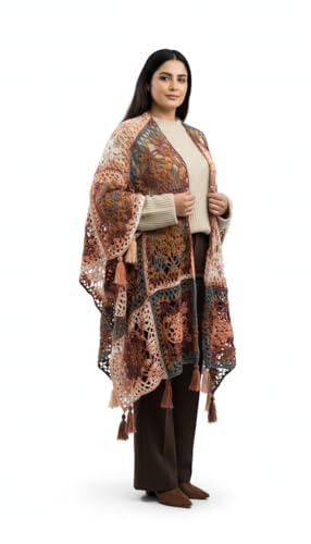Generic - Multi Color Crochet Shawl Open Lace Tassel Bohemian Style Pink Blue Beige Handmade Crochet