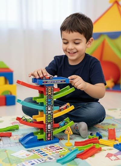 - تصميم DIY قابل للتركيب: يمكن للولد بناء وتركيب المسار بأنفسهم، مع إمكانية إضافة وحدات إضافية لزيادة ارتفاع المسار وتوسيع اللعب