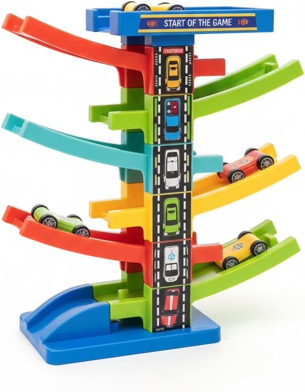 Generic - لعبة مسار سيارات السباق متعددة الألوان، مجموعة للأولاد مع سيارات ومنحدرات متدرجة، 3 سنوات فما فوق