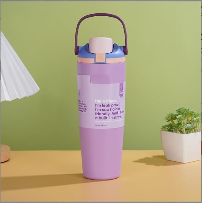Generic - زجاجة ماء رياضية متعددة الألوان، تصميم عصري، مع شفاطة مدمجة، 900 مل (موف)