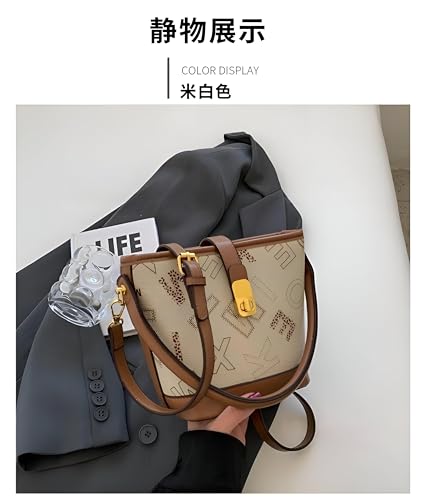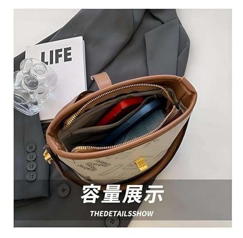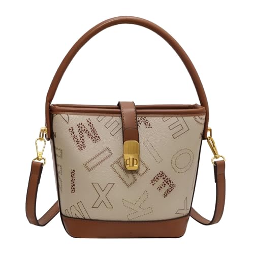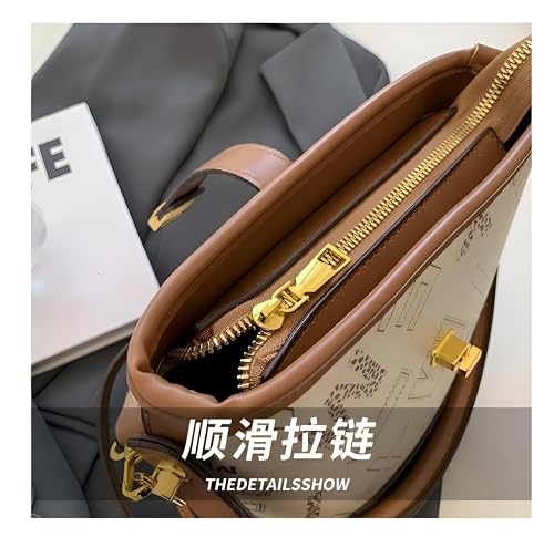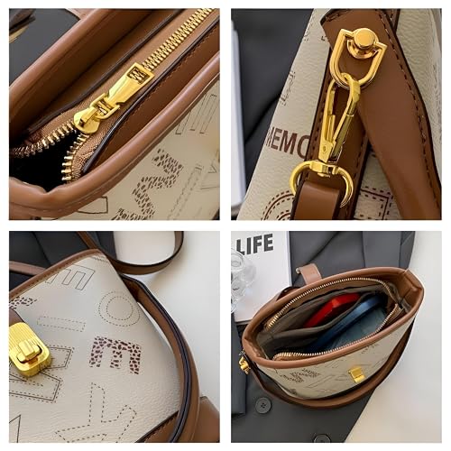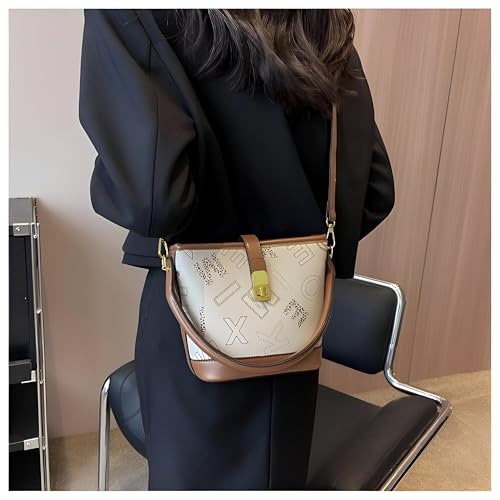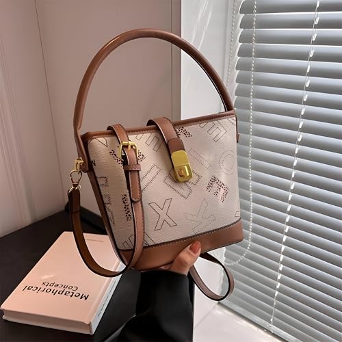 Generic - شنطة جلدية متعددة الجيوب - شنطة كروس بتصميم مونوغرام مع لمسات ذهبية، نمط بني وبيج، انيقة وعملية للاستخدام اليومي