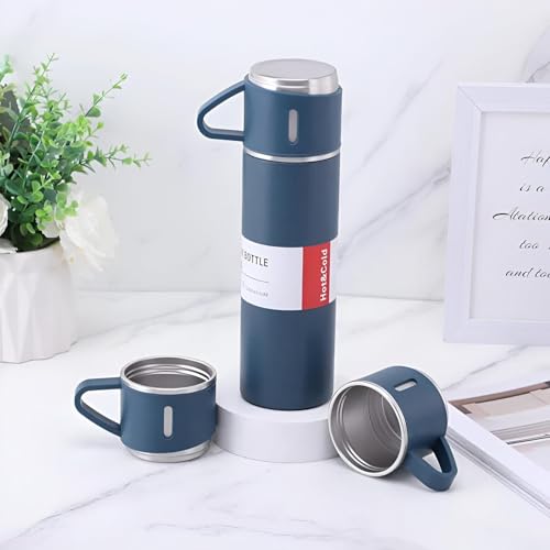 - With the ability to maintain temperature for hot drinks and 24 hours for cold drinks, the vacuum insulated mug is made of food-safe 18/8 stainless steel. The double-walled interior helps keep water, coffee or tea at the desired temperature for prolonged periods, meeting your hydration needs anytime. Available in a variety of colors and equipped with three replacement cups, this bottle makes an excellent gift choice, perfect for sharing drinks with friends and family.