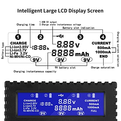 Generic - Multi-function CH4 4 Slots Smart Battery Charger for AA/AAA/18650/26650/6F22/16340/9V Li-ion Li-fe Ni-MH Ni-CD Battery