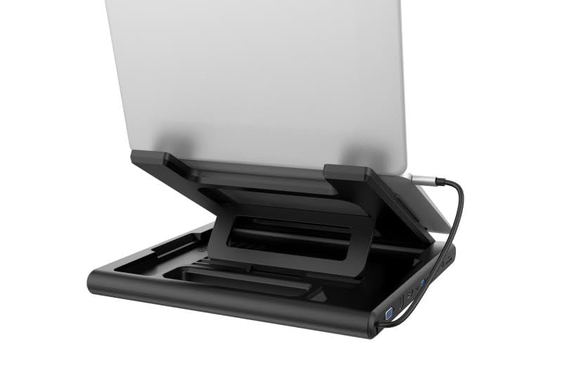 - حافظ على مكتبك خاليًا من التشويش مع حامل اللاب توب متعدد الوظائف وقاعدة توصيل من النوع سي مع شاحن لاسلكي، تدعم قاعدة شحن اللاب توب USB نوع سي توصيل الشاشات الخارجية المزدوجة وأجهزة USB الأخرى.