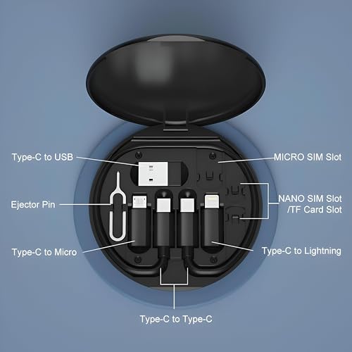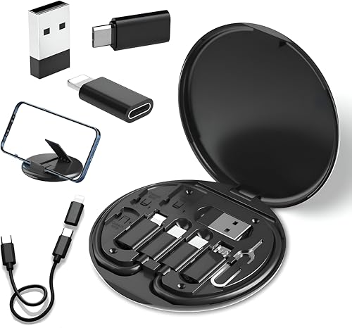 Generic - مجموعة كيبل USB متعددة الوظائف - تدعم الشحن من C الى الجوال، صندوق تخزين واداة ازالة شريحة الاتصال، وحامل جوال قابل للتعديل لجميع الهواتف الذكية