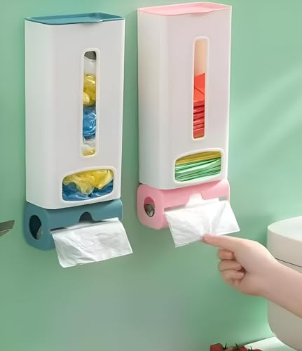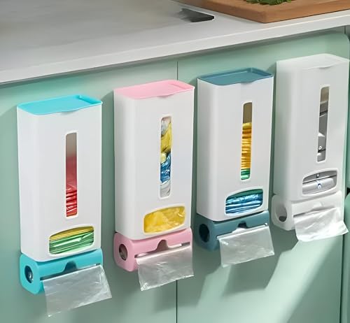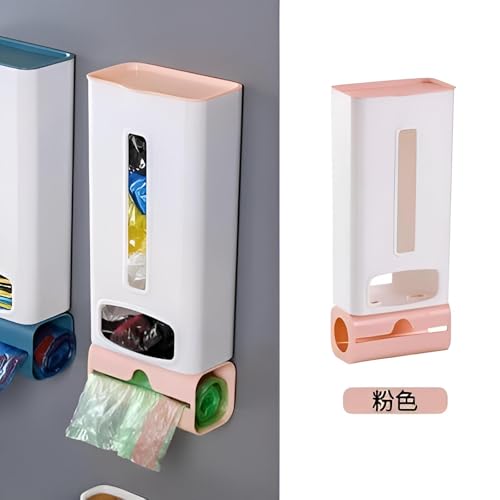 - This versatile wall-mounted plastic bag dispenser features a strong adhesive for quick and easy installation without tools, making it suitable for maintaining order in kitchens, bathrooms, living rooms, and offices. Its two compartments provide dedicated space for shopping bags and roll dispensers, optimizing storage and accessibility.