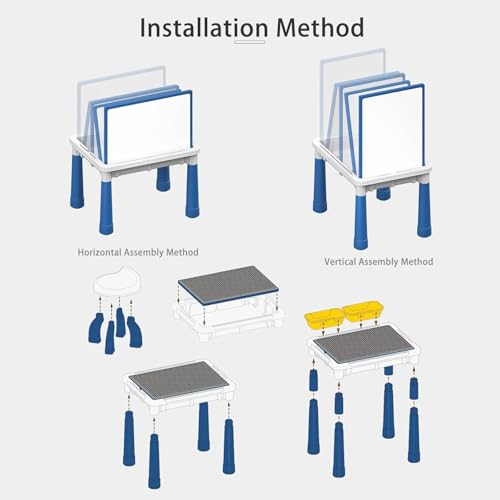 Generic - مجموعة مكعبات بناء متعددة الوظائف طاولة نشاط 4 في 1 مع جدار مكعب لوحة خربشة طريقة تجميع تتضمن بلاستيكية ملونة ومقعد