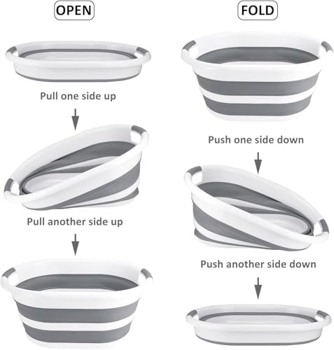 Idrese - سبت غسيل بلاستيكي قابل للطي متعدد الوظائف - حاوية تخزين منبثقة قابلة للطي، حوض استحمام للحيوانات الأليفة، حوض استحمام للقطط - حوض استحمام محمول خالي من البيسفينول أ، رمادي