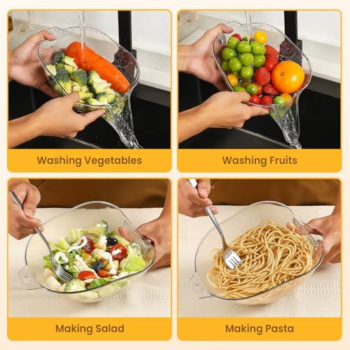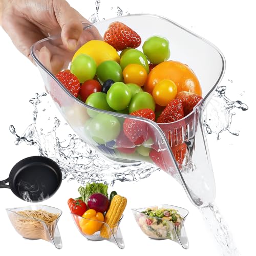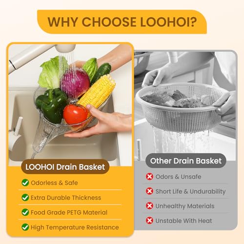 LOOHOI - سلة تصريف متعددة الوظائف مع فوهة، 2025 مطورة مقاومة لدرجات الحرارة العالية للمطبخ اساسيات المطبخ، سلة طعام بلاستيكية قابلة للازالة للطعام والخضروات والفواكه من قطعتين