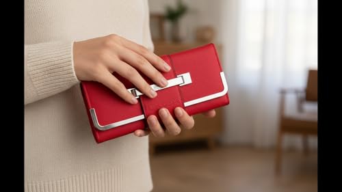 Generic - Multi-Functional Multi-Compartment Women Wallet - Zipper Closure Design - Large Capacity Waterproof Ladies Book - Daily Use - Money Coin Credit Card Holder (Red)