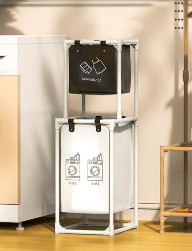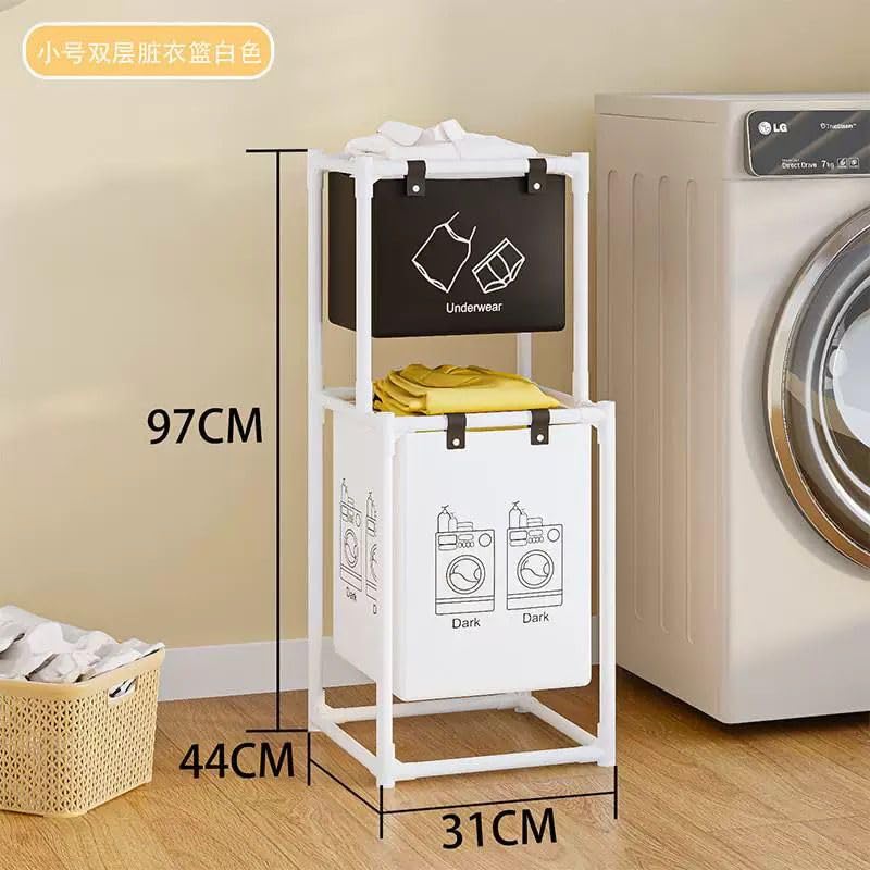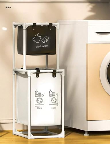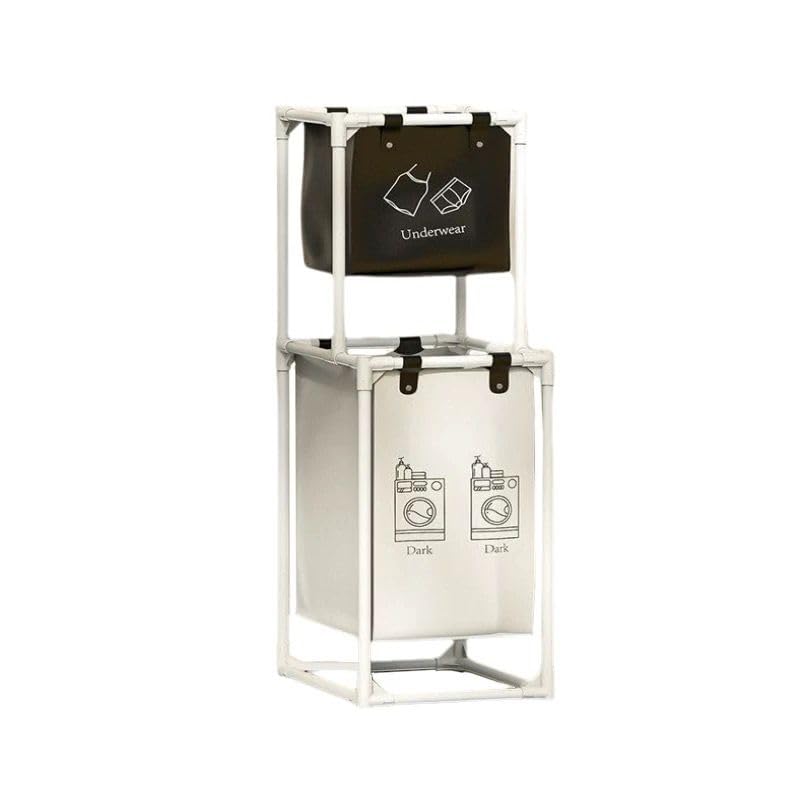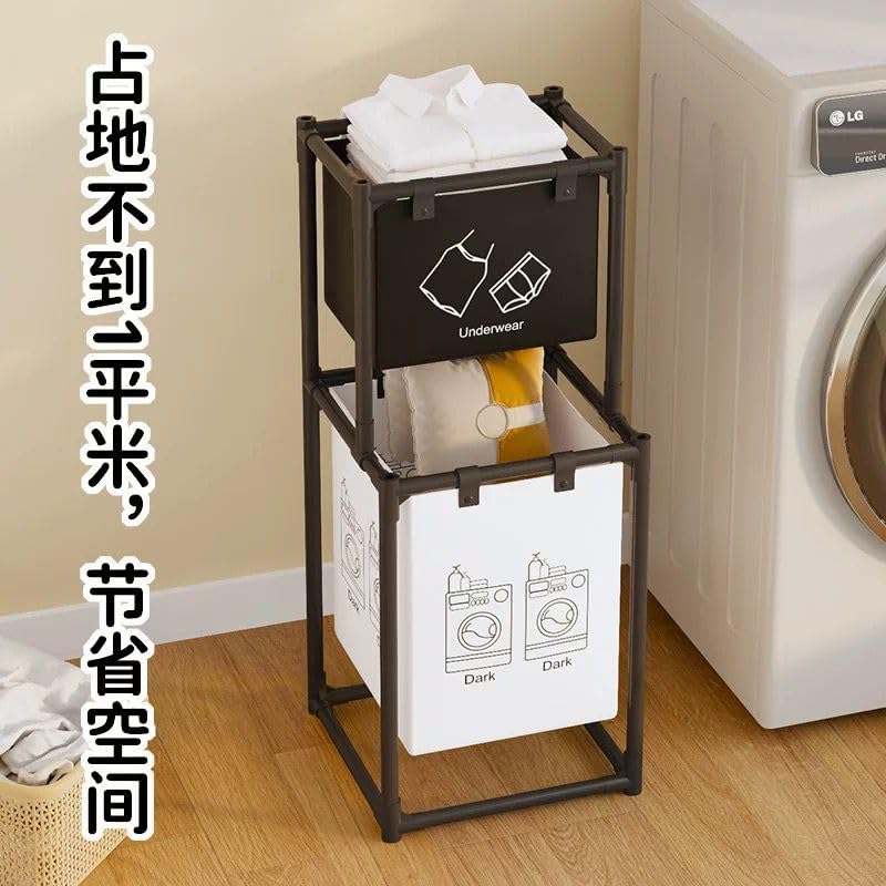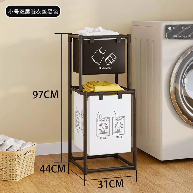 Generic - Multi-Functional Multi-Layer Laundry Organizer Basket with Large Capacity Baskets - Freestanding Metal Storage Rack for Clothes and Towels - Space Saving Organization Solution (2 Tiers - 2 Sections)