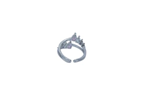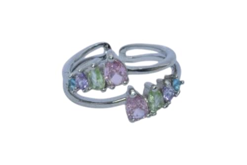 Generic - Multi Gemstones Design Stainless Steel Open Ring - Silver