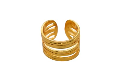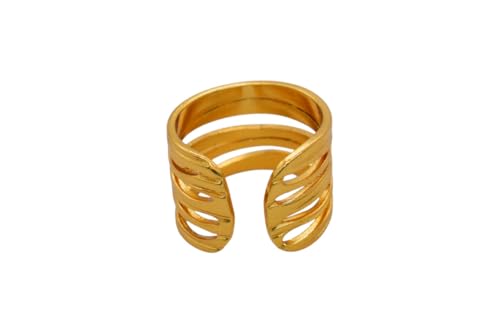 Generic - Multi Layer Design Stainless Steel Open Ring - Gold 1899-mesbah-AR195