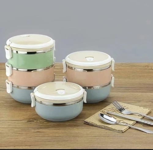 Generic - Multi-Layer Lunch Box, 4 Levels, 25.8cm x 14.6cm, Pastel Colors (Green, Pink, Cream, Light Blue)